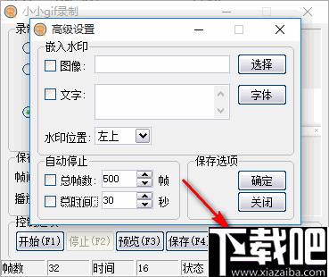 8、在高级设置面板中,用户还可以在GIF图像中添加文字或图像水印,进一步设置GIF帧和时间。